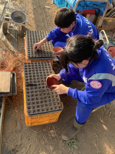 小学校の脱穀作業を一緒にしてもらったり、レタスの種まき、野菜収穫作業などしてもらいました。