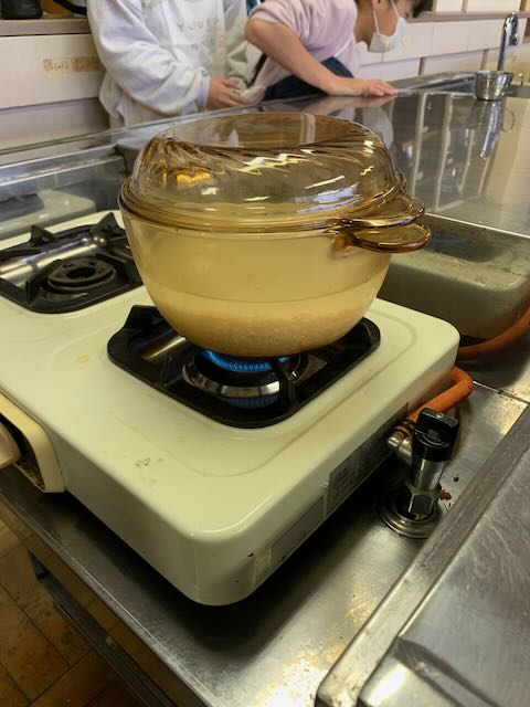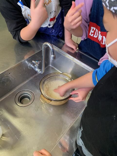 4班に分かれて、お米を炊きます。研ぎかた、水の測り方が、それぞれ違って面白かったです。