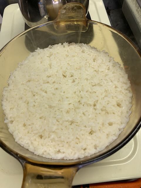鍋の中が見えると便利なような、気になりすぎるような…。火を止め、じっと蒸らしをします。